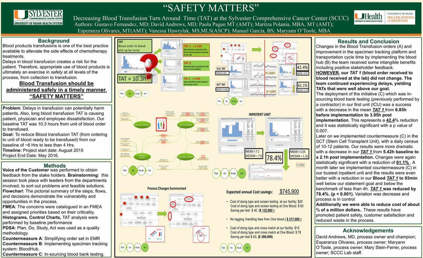 We decreased the blood transfusion turnaround time from over 6 hours to less than 2 hours.