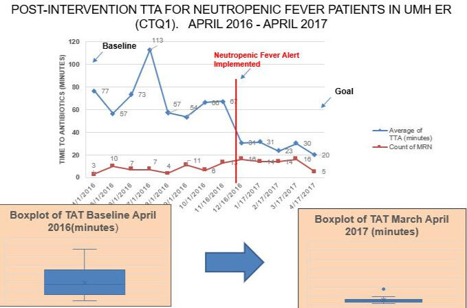 In another project we reduced the time to administer antibiotics in the emergency room for critically ill patients with low white blood cell counts and fever.